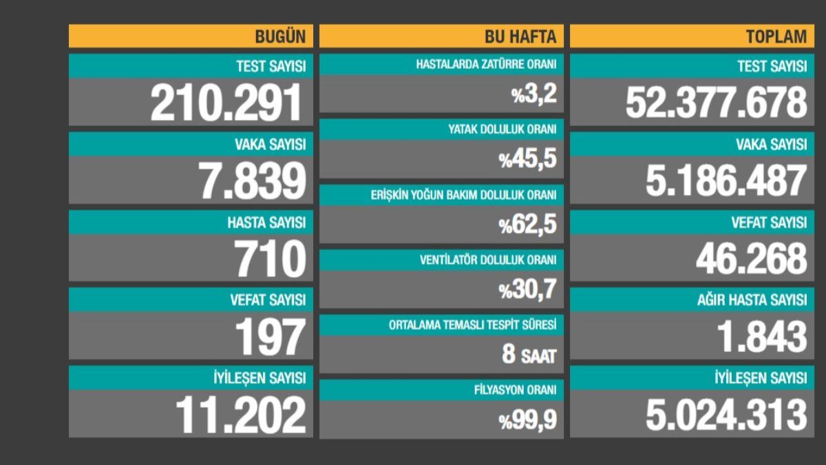Hastanelerde tedavi altında bulunan 11 bin 202 kişi sağlığına kavuşurken, 197 kişi yaşamını yitirdi.