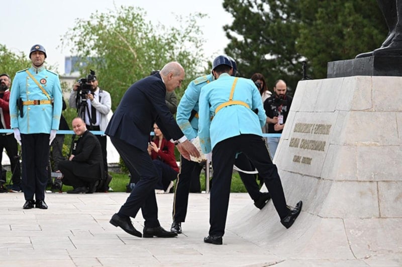 TBMM Başkanı Numan Kurtulmuş'un, Atatürk Anıtı'na kırmızı ve beyaz karanfillerden oluşan çelenk bırakmasının ardından saygı duruşunda bulunuldu, İstiklal Marşı okundu.