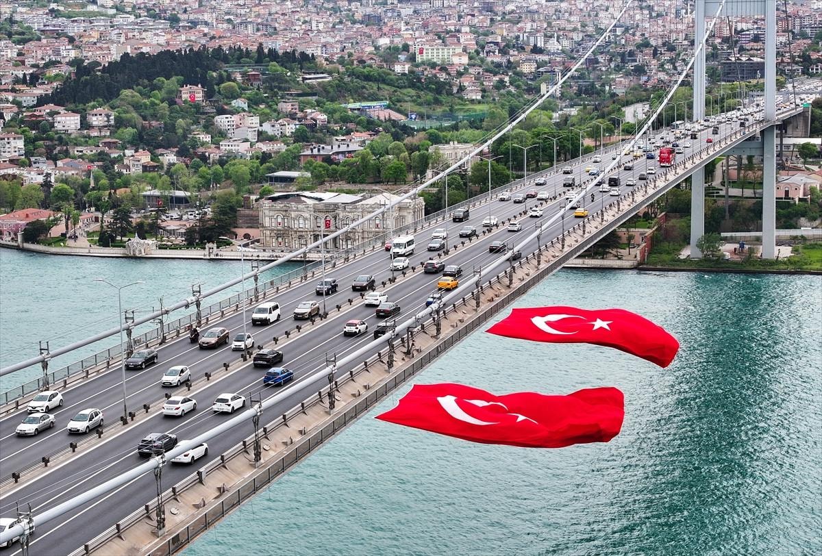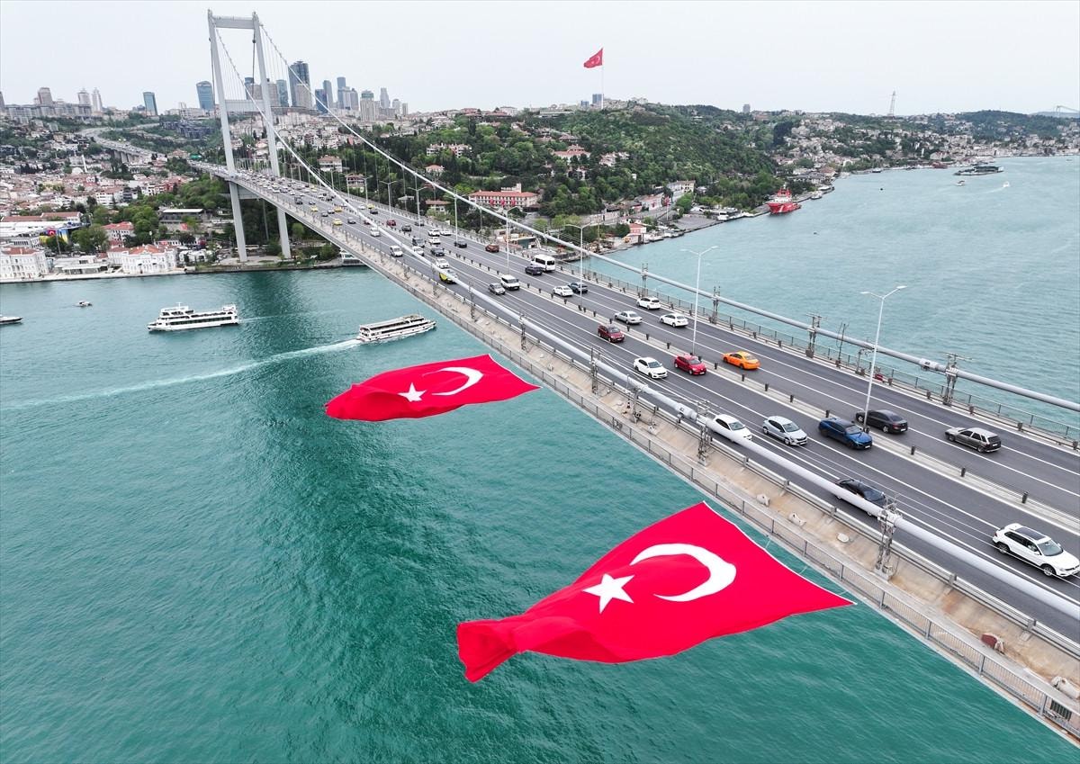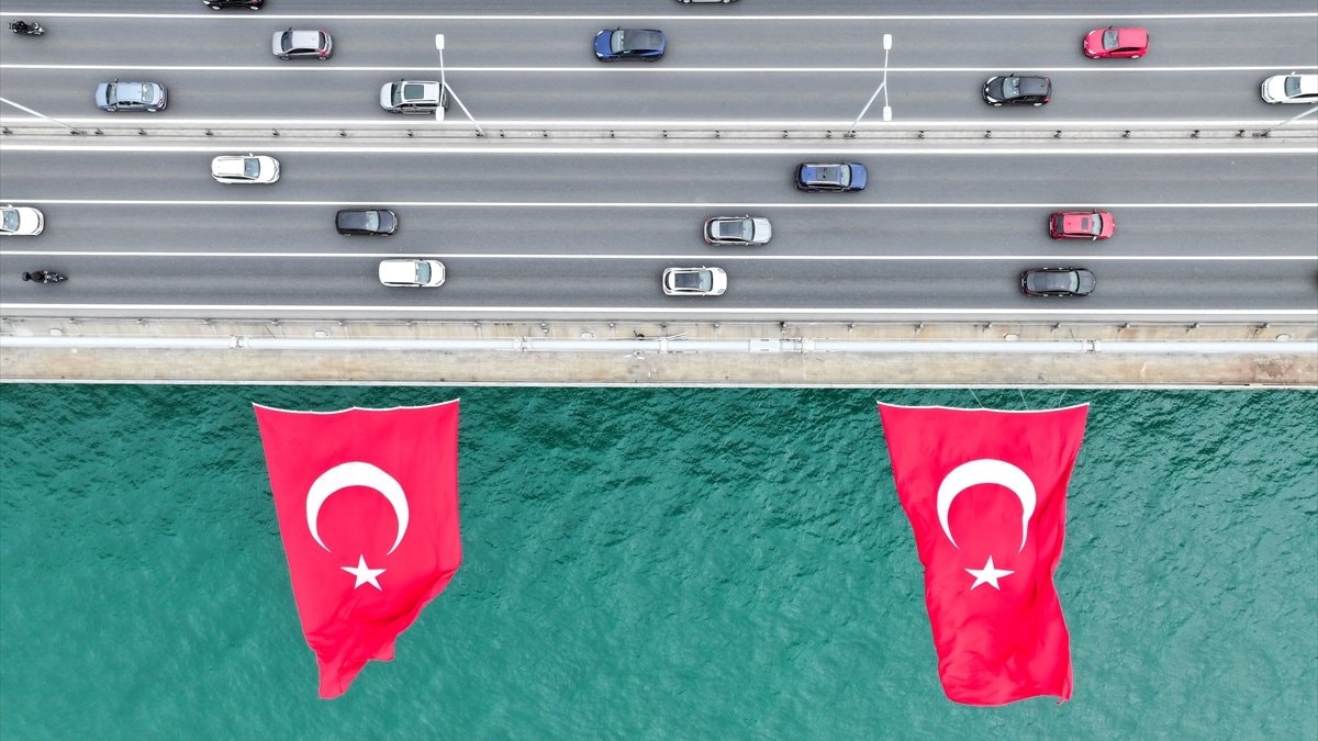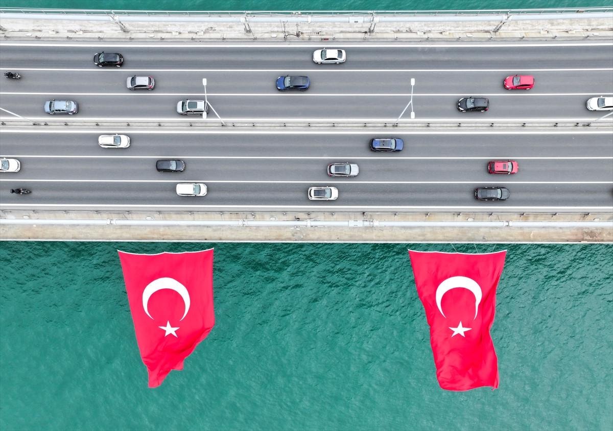 15 Temmuz Şehitler Köprüsü'ne dev Türk bayrakları asıldı. Dalgalanan Türk bayrağı, köprüden geçenleri ve çevre bölgelerde günü değerlendirenleri mest etti.