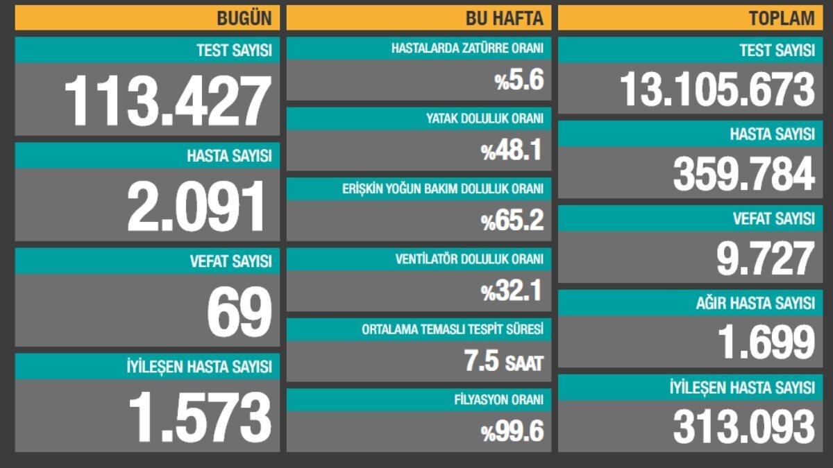 Bakan Koca'nın paylaştığı tabloya göre bugün 2091 kişi daha koronavirüs hastalığına yakalandı.
