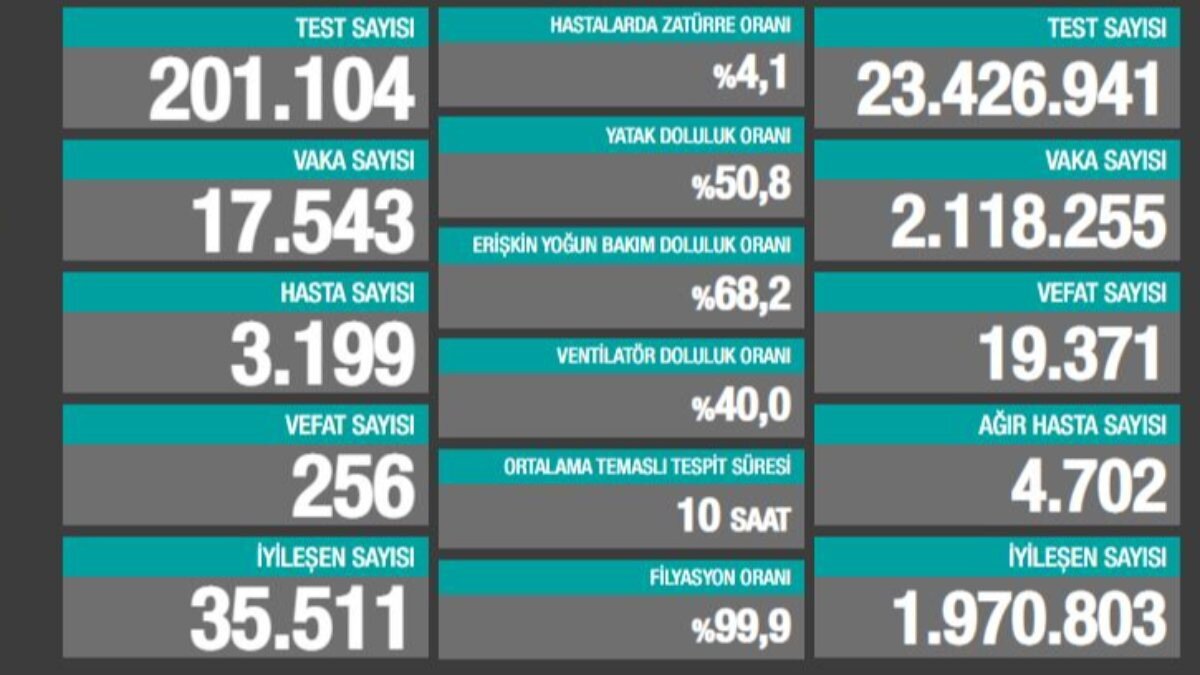 Koca'nın paylaştığı tabloya göre bugün yapılan testler sonucu 17 bin 543 yeni vaka tespit edildi.