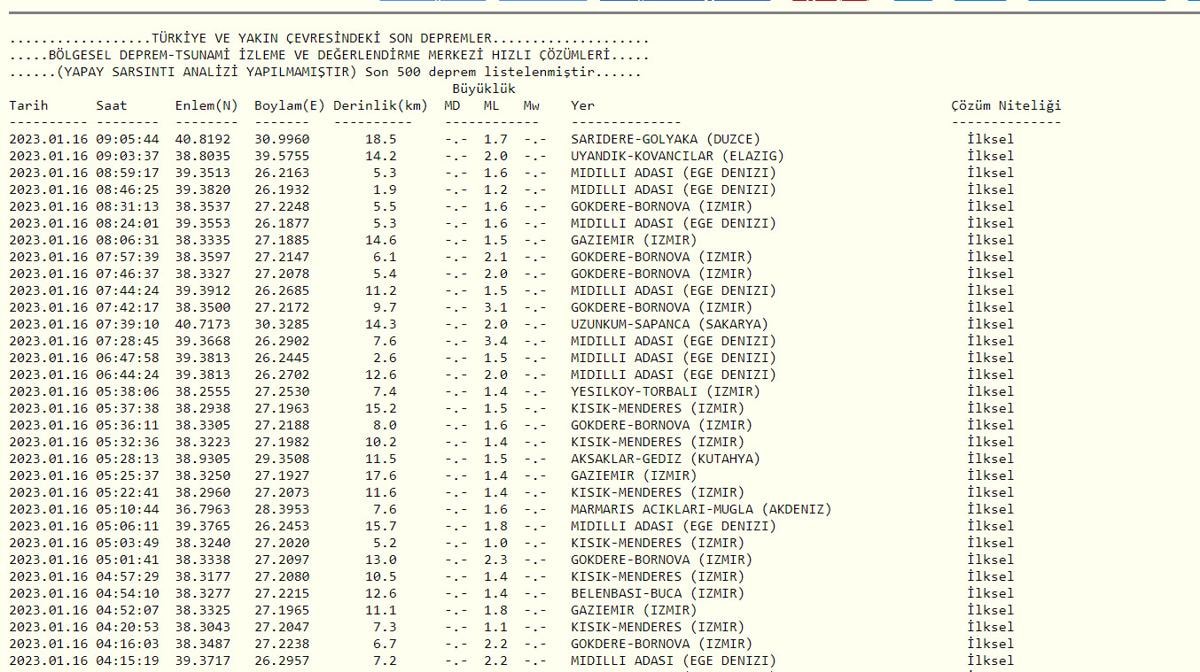 İşte Kandilli Rasathanesi'nin 25 Ocak 2023 deprem verileri: