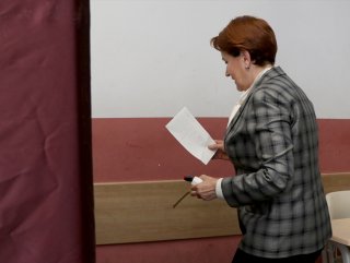 Gerekli kontrollerin yapılması için kimliğini sandık görevlilerine verdikten sonra oy pusulası ile zarfını alan Akşener, kabine geçerek oyunu kullandı.