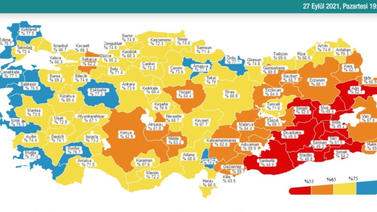 Toplamda uygulanan 1. doz aşı miktarı 53 milyon 556 bin 13, 2. doz uygulanan aşı miktarı 43 milyon 813 bin 987, 3.doz uygulanan aşı miktarı ise 10 milyon 215 bin 617 oldu.