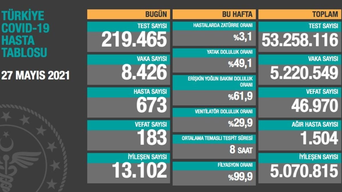 Bakanlığın paylaştığı tabloya göre bugün yapılan testler sonucu 8 bin 426 yeni vaka tespit edildi.