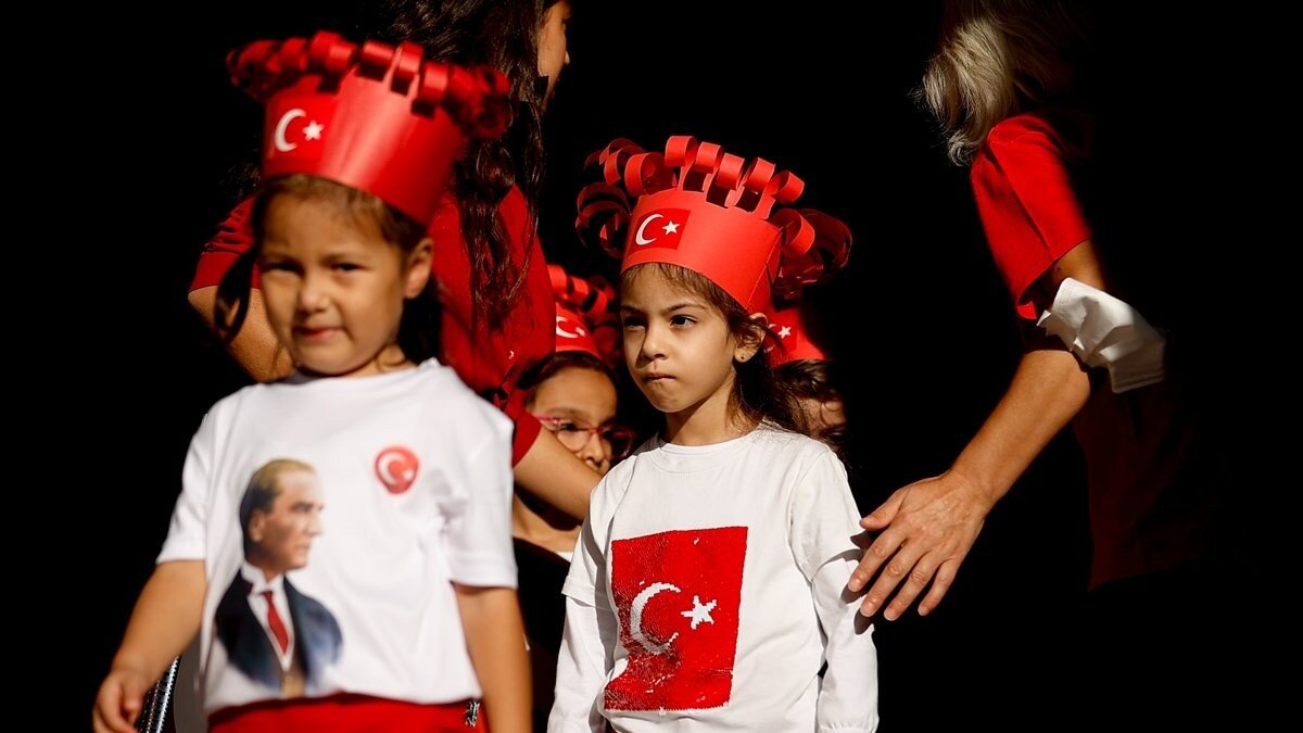 Antalya'da Ahmet Ferda Kahraman İlkokulu'nda 29 Ekim Cumhuriyet Bayramı dolayısıyla düzenlenen törende, çocukların coşkusu yüzlerine yansıdı.