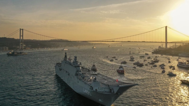 Boğaz'da da Türk Yıldızları'nın görsel şovları yer aldı. Öte yandan Türk tarihinde bir ilke imza atıldı ve İstanbul Boğazı’ndan 100 donanma gemisi geçti.