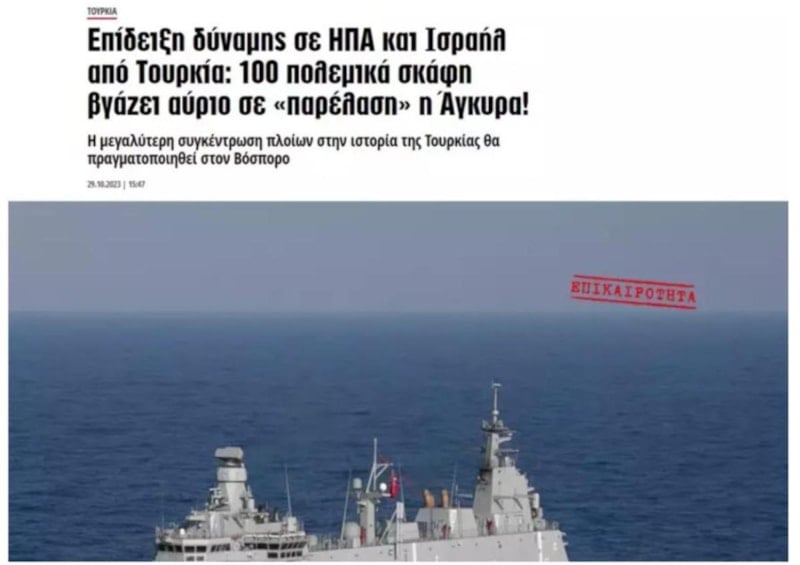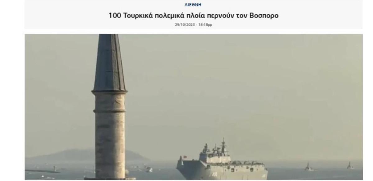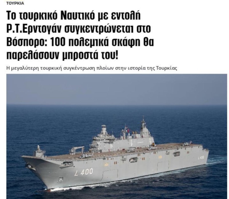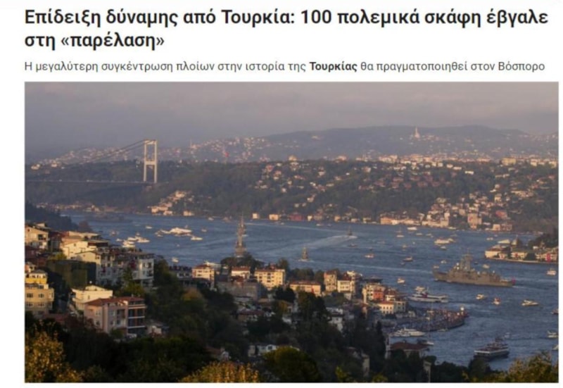 Yunan medyası da İstanbul Boğazı’ndan geçen 100 gemiyi, "Güç gösterisi" başlığıyla manşetine taşıdı.