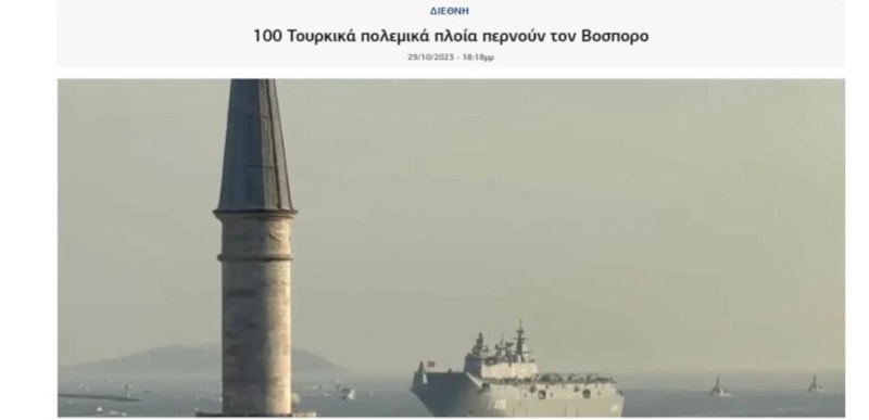 Cumhuriyet’in 100. yılı kutlamaları kapsamında İstanbul Boğazı’nda bir ilke imza atarak geçit töreni düzenleyen 100 donanma gemisi, Yunan medyasını endişelendirdi. Ülkedeki haber siteleri, o anları manşete taşıdı.