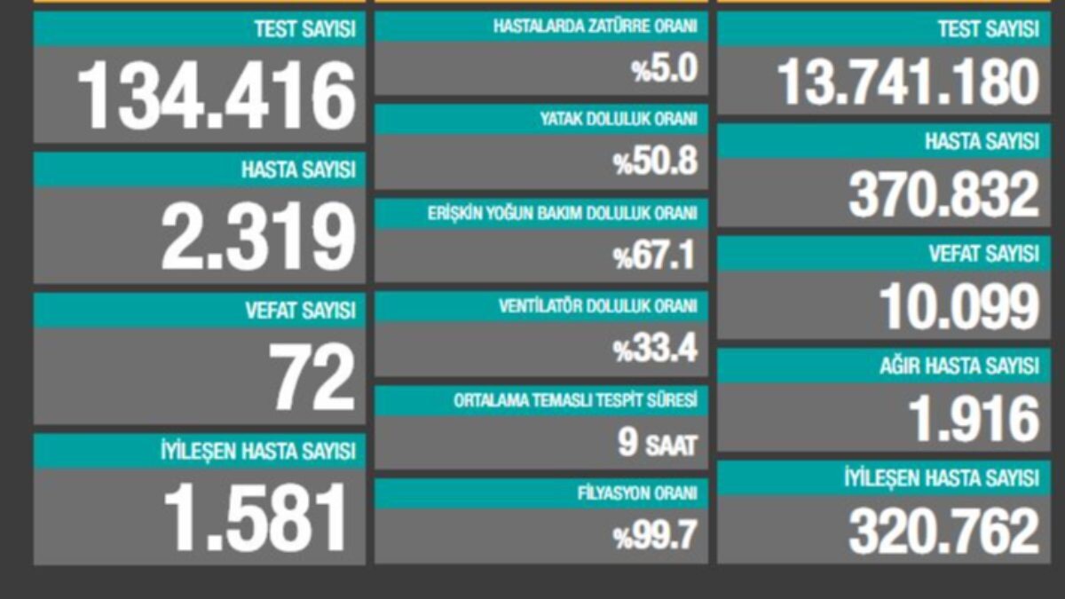 Tedavi altındaki 1581 kişi sağlığına kavşurken 72 kişi vefat etti.