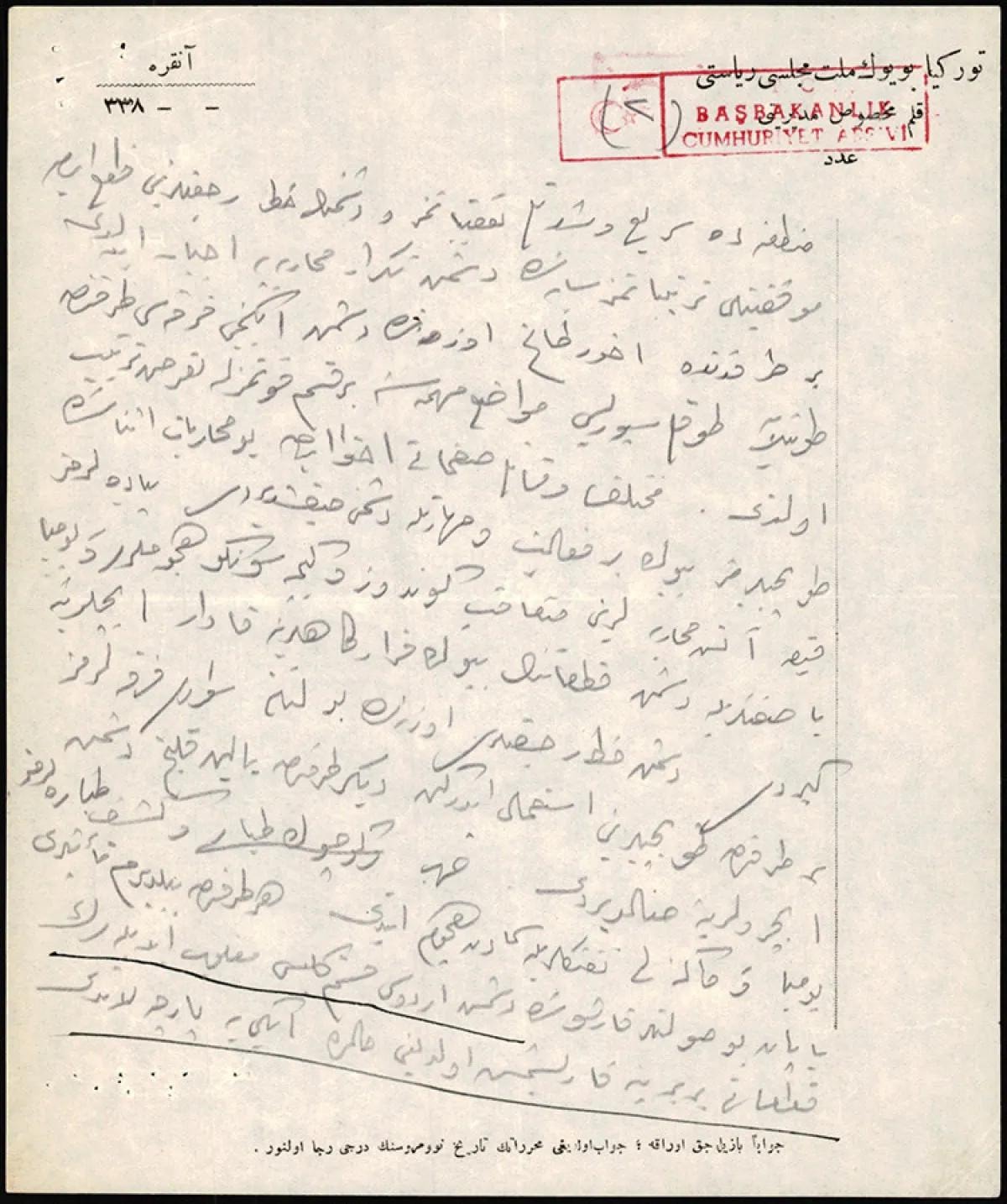 Mustafa Kemal Paşa'nın bir devlet adamı olarak savaş ortamında dahi kayda ve geleceğin arşiv hafızasına not düşmekten geri kalmadığını görmekteyiz.