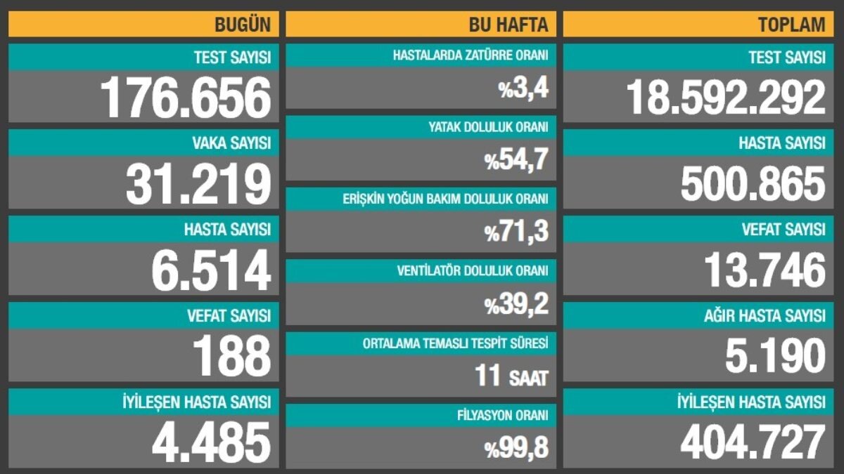 Tedavi altındaki 4 bin 485 kişi virüsü yenerek sağlığına kavuşurken 188 kişi hayatını kaybetti.