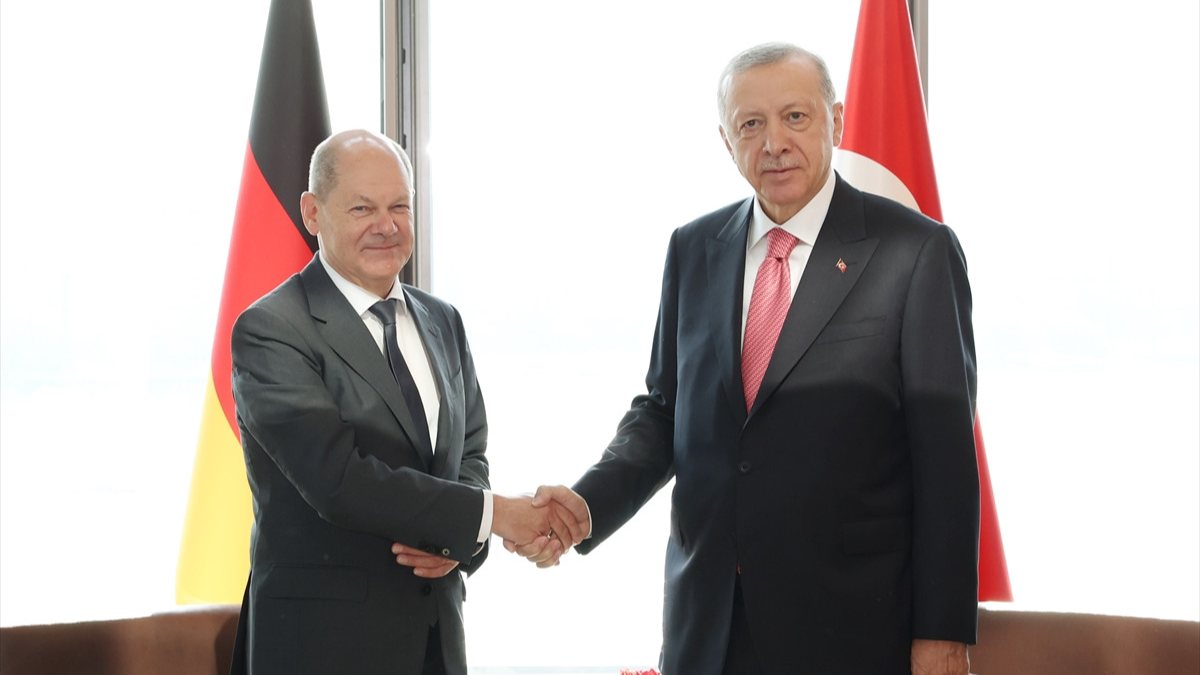 Cumhurbaşkanı Recep Tayyip Erdoğan, diplomatik temasları kapsamında Almanya Başbakanı Olaf Scholz ile bir araya geldi.