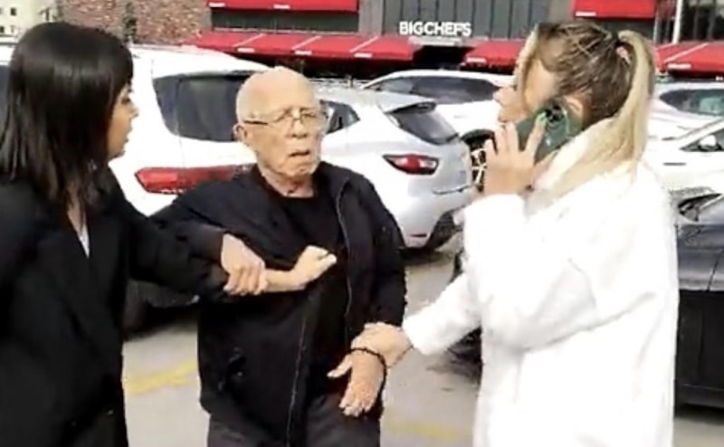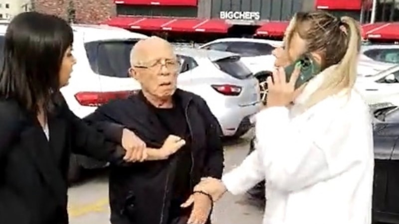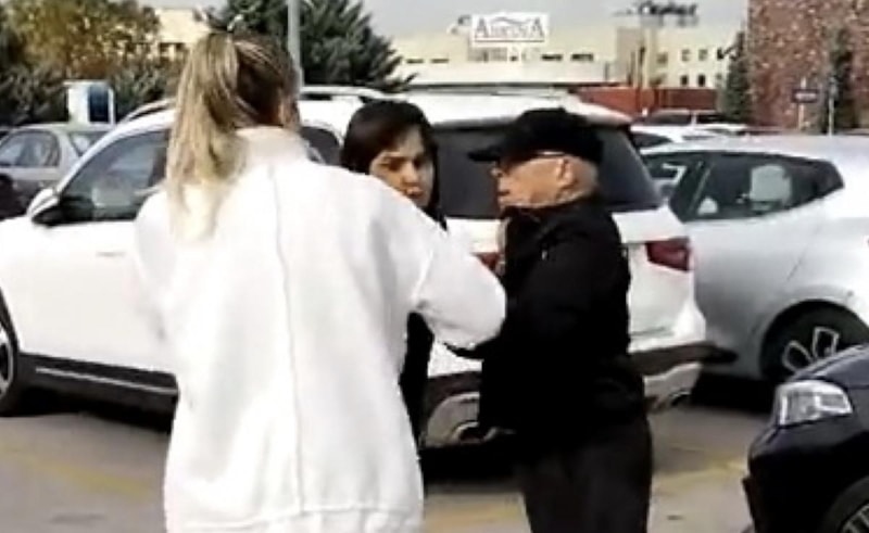 Tepki gösteren kadınların Mehmet Özat'a müdahalesi ise cep telefonuyla görüntülendi.
