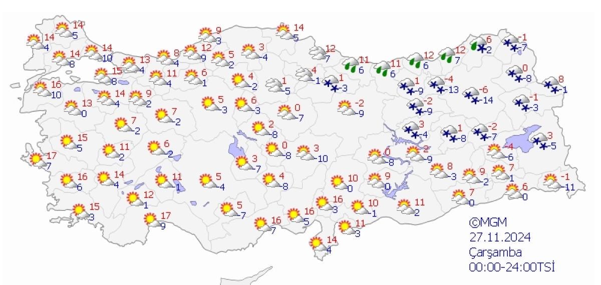 Öte yandan, akşam saatlerinden itibaren batıdan başlayarak Marmara'da güney ve güneybatıdan, yarın sabahtan itibaren kuzey yönlerden, öğle saatlerinden itibaren de İç Ege, Batı ve Orta Karadeniz ile İç Anadolu'da güney ve güneybatı, zamanla kuzeybatıdan kuvvetli rüzgar ve fırtına bekleniyor.