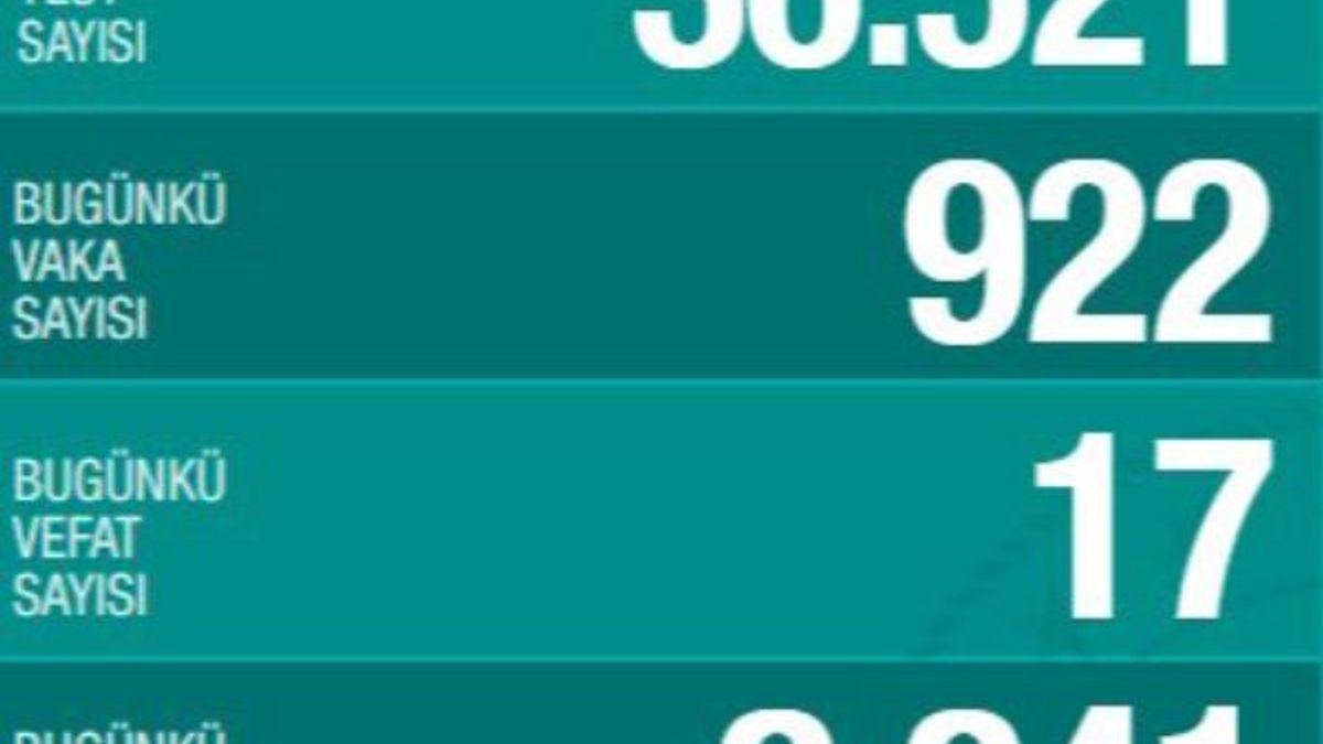 Gün içinde yapılan 36 binden fazla test sonucu 922 vaka tespit edildi. Toplam vaka sayısı 173 bini geçti.