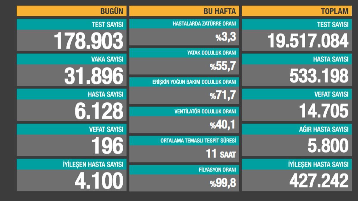 Tedavi altındaki 4 bin 100 kişi virüsü yenerek sağlığına kavuşurken 196 kişi hayatını kaybetti.