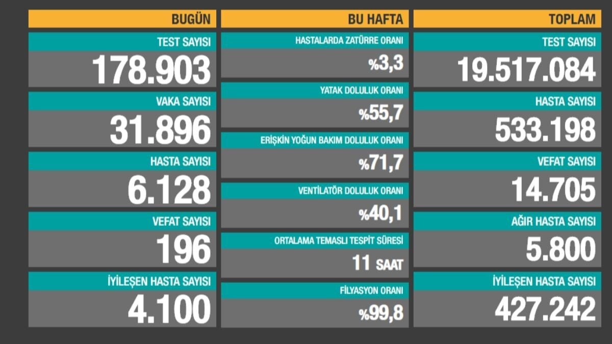 GÜNLÜK TOPLAM VAKA 31 BİN 896 OLDU