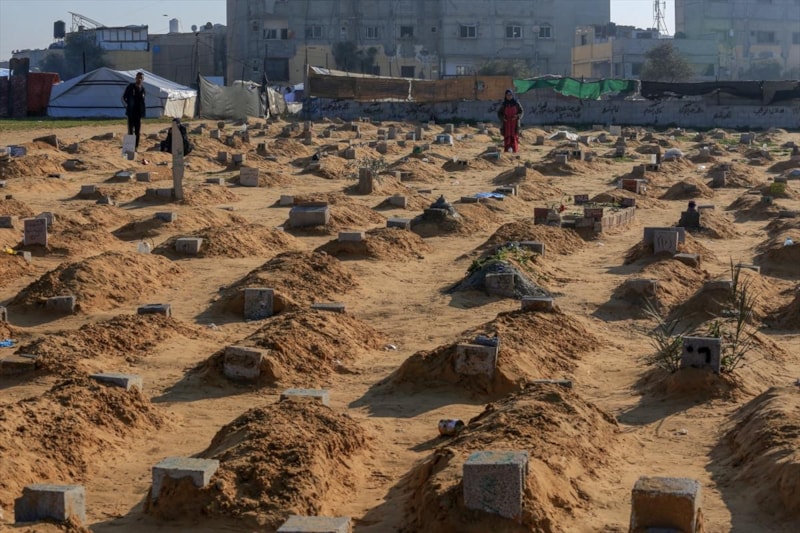 İsrail saldırılarda, 500'den fazla cami ve kiliseyi, 300'den fazla üniversite ve okulu, 360 binden fazla konutu yıktı, Gazze genelindeki 35 hastaneden 31'inden fazlasını da hizmet dışı bıraktı.