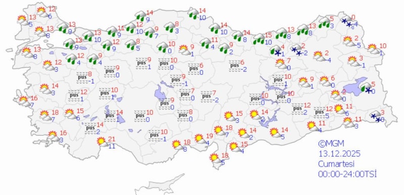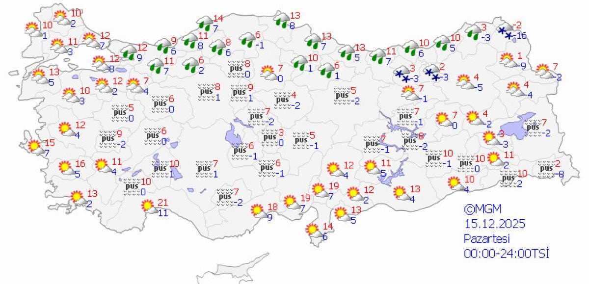 Yüksek rakımlarda kar olasılığı sürüyor, ancak kuvvetli yağış beklenmiyor.