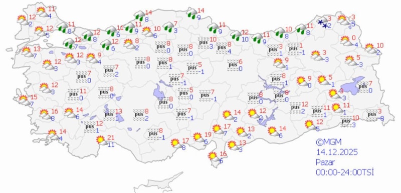 İç ve doğu kesimlerde sıcaklıklar 0-10 derece arasında, batıda 15-20 derece civarında.