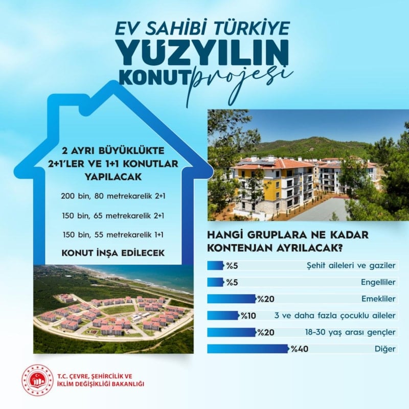 Çevre, Şehircilik ve İklim Değişikliği Bakanlığı, Cumhurbaşkanı Recep Tayyip Erdoğan’ın açıkladığı 81 ili kapsayan “Yüzyılın Konut Projesi” ile Türkiye tarihinin en büyük sosyal konut adımını hayata geçiriyor.