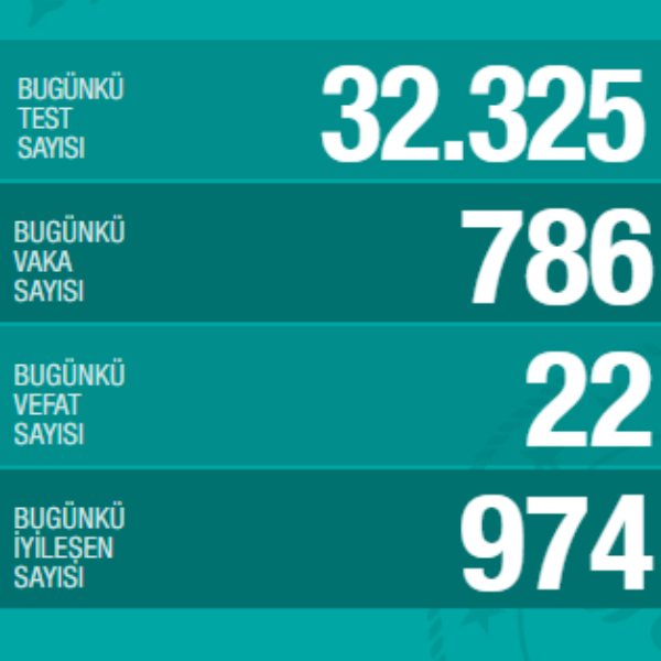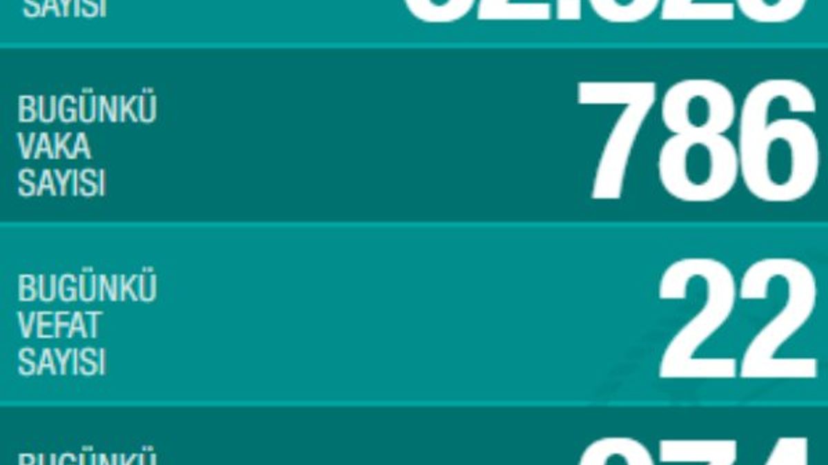 Bugün tespit edilen yeni vaka sayısı ise 786 olarak belirlendi.