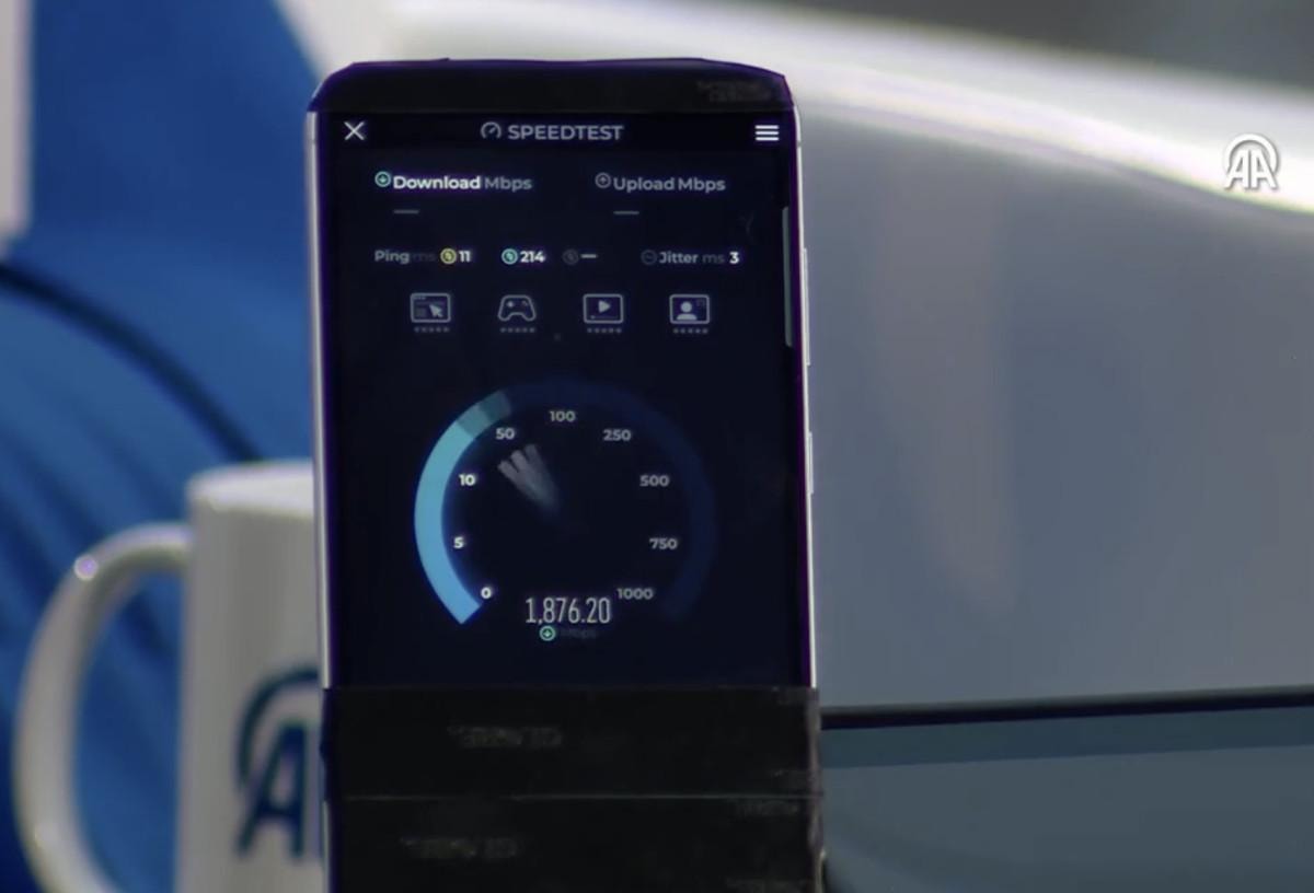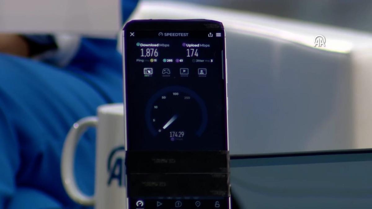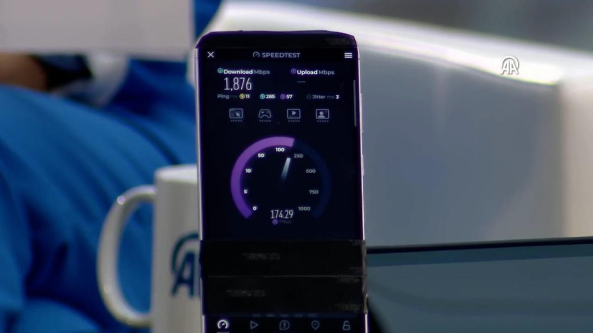 5G testlerinde 100 megabit ile 1 gigabit arasındaki hızlara ulaştık. Şu andaki testte indirme hızı 1.8'e kadar çıkıyor. Gönderme hızı da aşağı yukarı 175'ler civarında.
