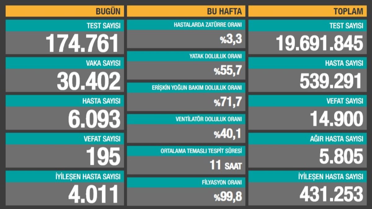 Tedavi altındaki 4 bin 11 kişi sağlığına kavuşurken 195 kişi hayatını kaybetti.
