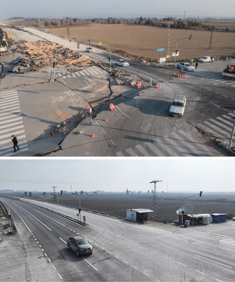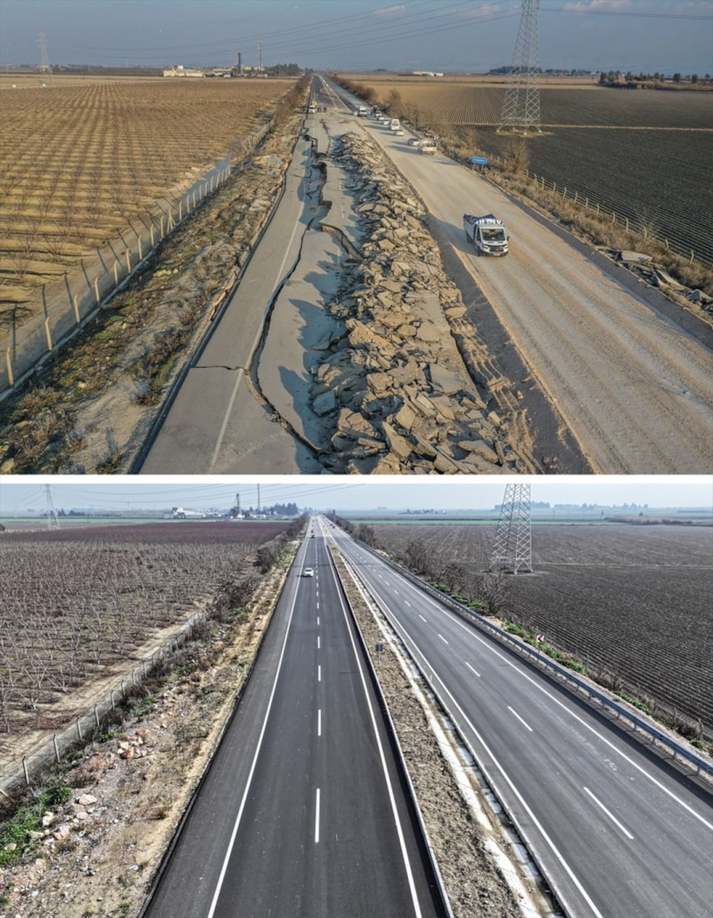 Deprem sabahı derin yarıkların oluştuğu Antakya–Reyhanlı kara yolunun Demirköprü mevkisi, üç yıl sonra yenilenmiş ve ulaşıma uygun haliyle kayda alındı. Görüntüler, altyapı çalışmalarında gelinen aşamayı net biçimde ortaya koydu.