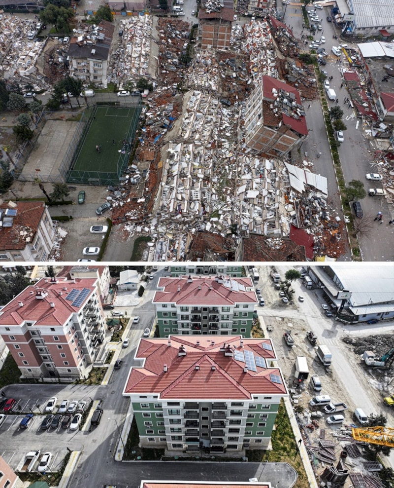 Afette 526 kişinin yaşamını yitirdiği ve kentin yıkım sembollerinden biri haline gelen “600 Evler Sitesi”nin bulunduğu alanda yapılan yeni yerleşim alanları da drone görüntülerinde yer aldı. Bölgenin tamamen değişen çehresi dikkat çekti.
