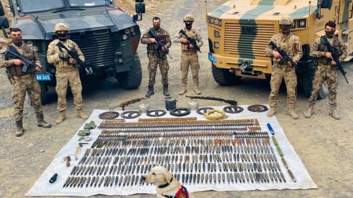 Mağaralarda yapılan aramalarda 5 kilo amonyum nitrat, 1 AK-47 kalaşnikof piyade tüfeği, 5 M-16 piyade tüfeği şarjörü, 1 mavzer, 1 savunma el bombası, 2 RPG-7 anti personel mühimmatı, 2 adet RPG-7 roketatar sevk fişeği, 295 uçaksavar mühimmatı, 116 adet 14,5 mm doçka mühimmatı, 345 23 mm doçka mühimmatı, 10 bixi mühimmatı, 48 AK-47 piyade tüfeği şarjörü, 318 adet 7,62 mm çapında mühimmat, 1 kalıp patlayıcı madde, 2 metre saniyeli fitil, 2 küçük tüp, 1 kamuflaj sırt çantası, 6 pil bloğu, 1 hilti ucu, 4 metre kablo, 2 led ampul, 1 adet 4 cepli kütüklük ve patlayıcı yapımında kullanılan 1 adet düdüklü tencere ele geçirildiği belirtildi.
