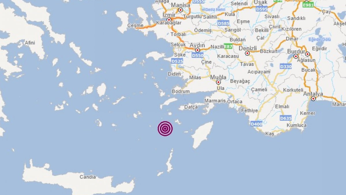 Ege Denizi'nde Muğla'nın Datça ilçesi açıklarında saat 12.21'de 4.0 büyüklüğünde bir deprem meydana geldi.