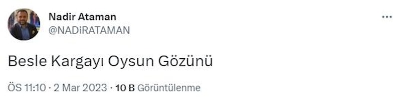 İBB ve Bakirköy CHP Belediye meclis üyesi Nadir Ataman sosyal medyadan yaptığı paylaşımda "Besle Kargayı Oysun Gözünü" yorumunda bulundu.