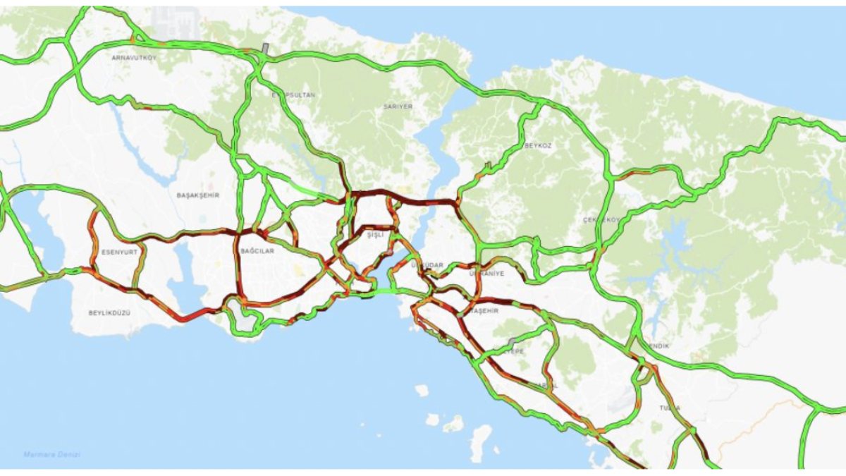 Saat 17.15 itibarıyla İBB'nin trafik yoğunluğu haritası yüzde 89'u gördü.