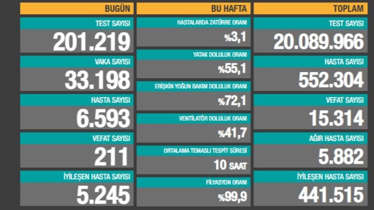 Tedavi altındaki 5 bin 245 kişi virüsü yenerek sağlığına kavuşurken 211 kişi hayatını kaybetti.
