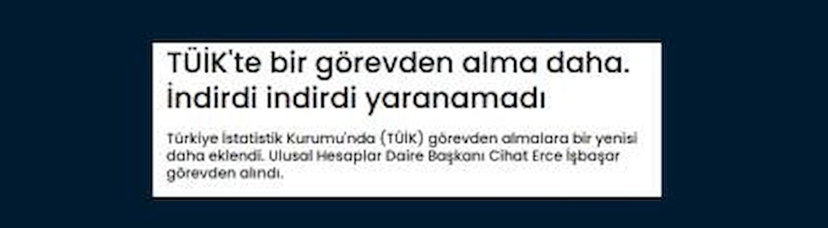 Görevden alındığı iddia edilen Ulusal Hesaplar Daire Başkanının, geçen ay turizm gelir revizyonunun yapıldığı Uluslararası Ticaret İstatistikleri Dairesi Başkanlığına getirildiği hatırlatılan bültende, "İlgili daire başkanının Kültür ve Turizm Bakanlığında geçmiş dönemlerde çalışmış olması ve tecrübesinden de yararlanarak kendisine diğer dairede daha fazla ihtiyaç bulunması nedeniyle bu değişikliğe gidilmiştir." ifadelerine yer verildi.
