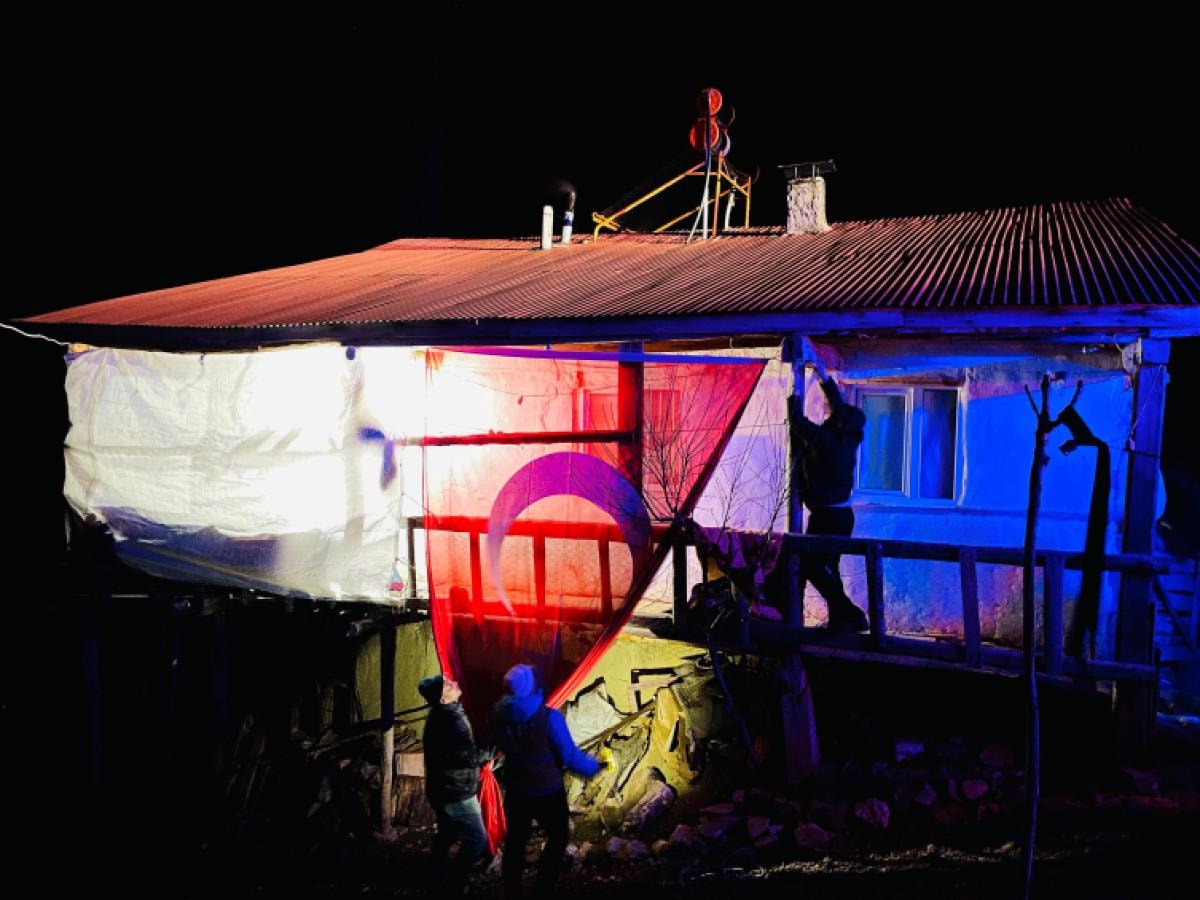İtfaiye ekipleri şehidin babaevine Türk bayrağı astı