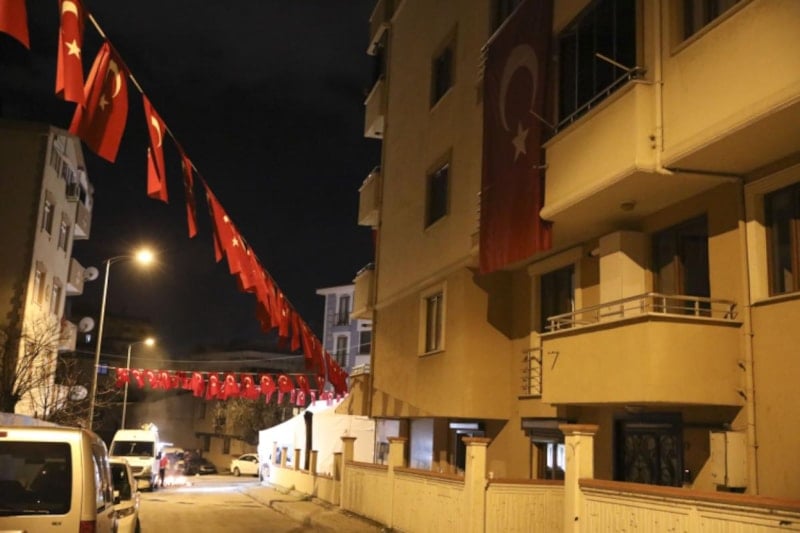 Şehidin evine Türk bayrakları asıldı. Yakınları ve komşuları, taziye için şehit evine gelmeye başladı.