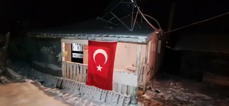 Şehidin ailesinin evine Türk bayrağı asıldı. Serkan Sayın'ın 5 kardeşinin olduğu, abisinin de astsubay olarak görev yaptığı öğrenildi.
