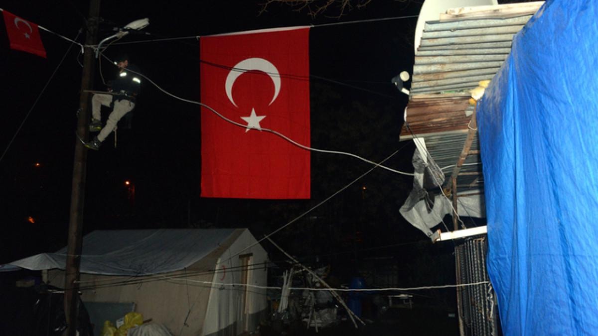 3 çocuklarından tek oğlu olan bekar Müslüm'ün şehadet haberiyle Özdemir çifti gözyaşlarına boğulurken, ailenin yaşadığı çadır bölgesine Türk bayrakları asıldı.