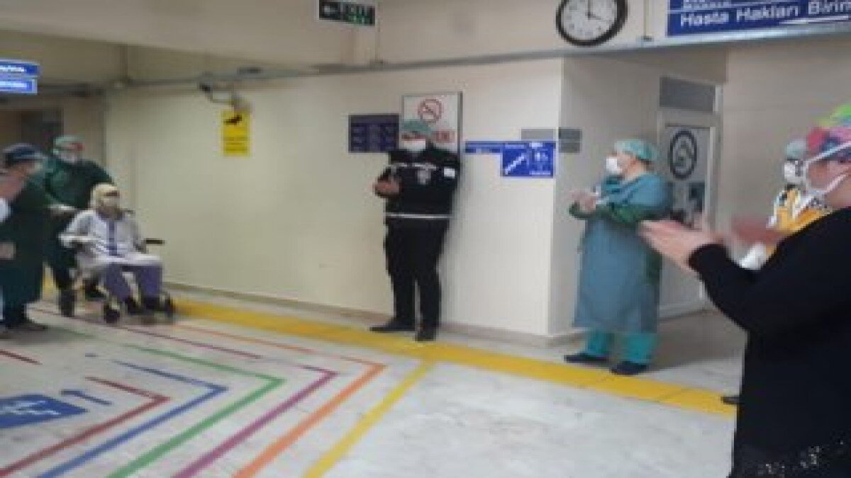 10 günlük tedavi sonrası hasta kadın, bugün sağlık çalışanlarının alkışları eşliğinde hastaneden 14 gün izolasyon önerisiyle taburcu edildi.