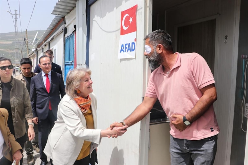 Geçici Barınma Merkezi'ndeki Şehit Astsubay İbrahim Tıraş İlkokulu'ndaki öğrencilerle sohbet eden Ferreira, daha sonra merkezdeki depremzedelerle görüştü, ailelerle bir süre sohbet etti.