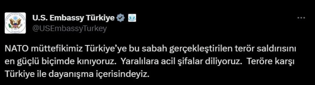 Patlamanın üzerinden saatler geçtikten sonra açıklama yapan ABD Ankara Büyükelçiliği ise destek mesajı gönderdi.