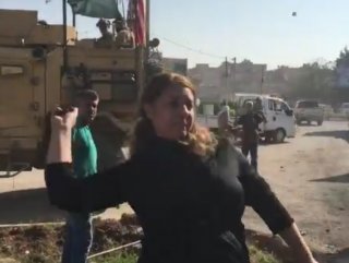 Hain Amerika diye bağırıp askeri araçları taşlayan kadın terörist İZLE