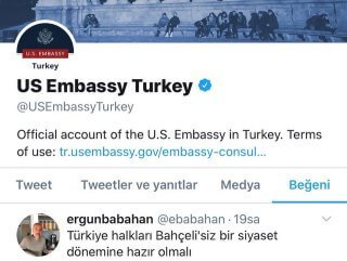 Dün ABD Büyükelçiliği'nin resmi Twitter hesabından, FETÖ firarisi Ergun Babahan'ın Devlet Bahçeli'yi hedef alan tweet'in beğenilmesiyle başlayan süreç devam ediyor.