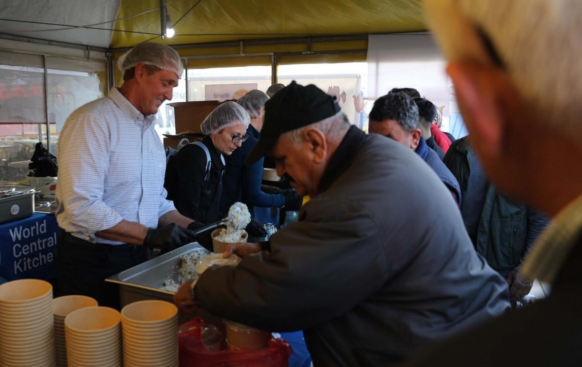 ABD merkezli yardım derneği olan Work Central Kitchen’in (Dünya Merkez Mutfağı) Gaziantep'in İslahiye ilçesinde depremzedelere yemek dağıttı.