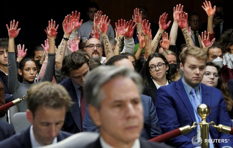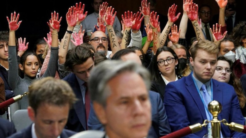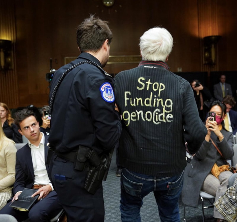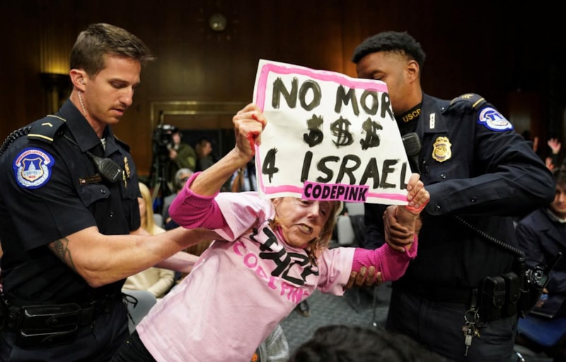 ABD'de İsrail için istenilen yardım, eylemlere neden oldu. Senato'da yapılan eylemde yardımı onaylamayan bazı protestocuların kollarına kırmızı boya sürerek Gazze yazdığı görüldü.