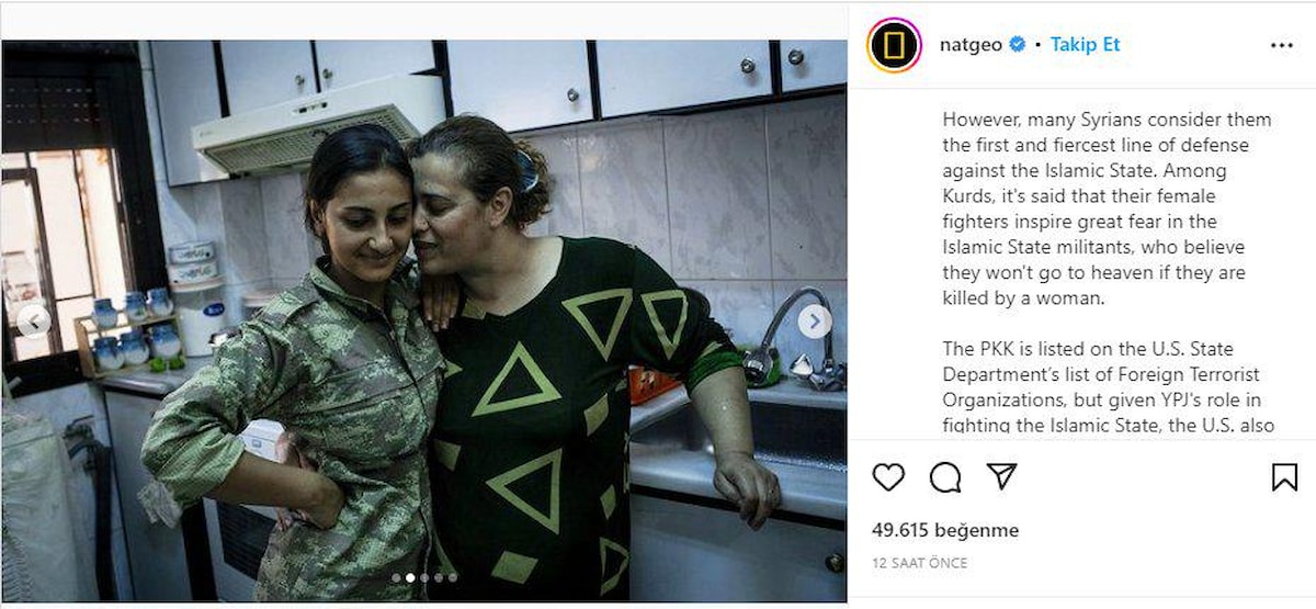 Sosyal medya hesabından açık açık teröristlere ilişkin paylaşımlar yapan site, İstanbul’da yaşadığı öğrenilen fotoğrafçı Erib Trieb’in, PKK’lı kadın teröristlerin karelerini çektiği fotoğraflara yer verdi.