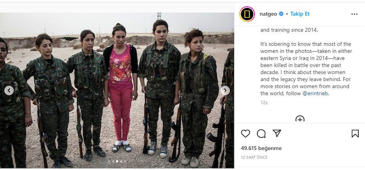 Paylaşımda Trieb’in, “Seyahatlerim ve görevlerim sırasında dünyanın her yerinde inanılmaz kadınlarla tanıştım hiçbiri Suriye Kadın Koruma Birimi YPJ'den daha dinamik ve küstah değildi." sözleri de eklendi.